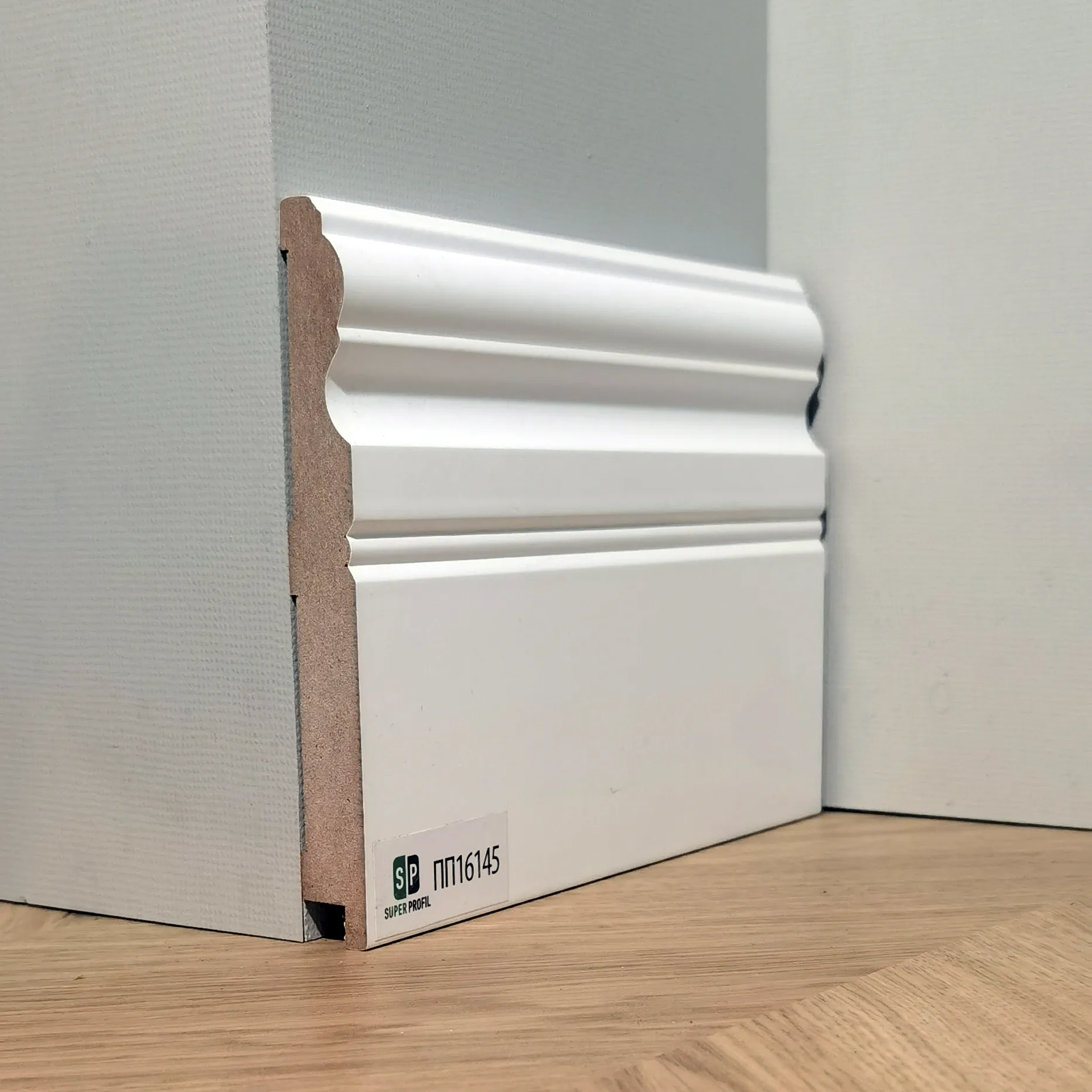 Виготовлений із щільної МДФ-плити та покритий зносостійким ламінованим шаром, плінтус має рівну поверхню, стійкий до подряпин і легко очищується. Декоративне покриття імітує натуральну деревину або сучасні однотонні кольори, що дозволяє ідеально поєднати плінтус із ламінатом, паркетом або вініловою підлогою.